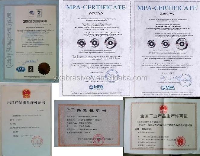 3. Based on our commitment to excellent quality, all Silver Star grinding wheels meet European EN12413, MPA and ISO9001:2008 international quality system.