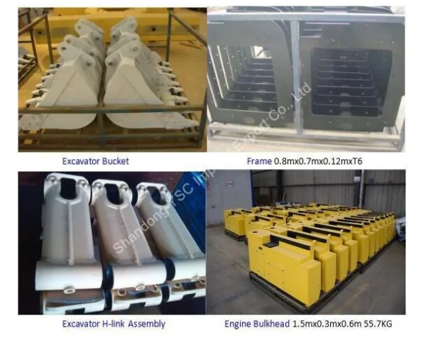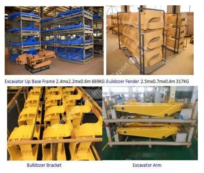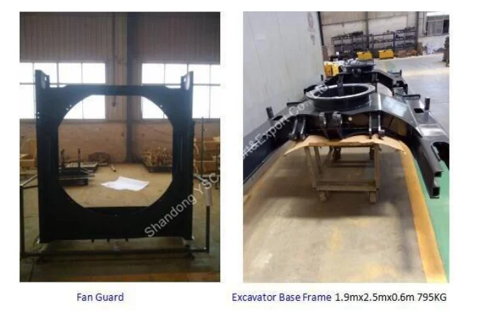 excavator bucket, long boom and arm, bulldozer bucket, pins and bushings, H-link assy, base frame(up base frame and below base frame), dozer blade, fender, L-frame, engine bulkhead, tripper baffle, hydraulic tank, adapter,mast braket, concrete mixer truck and so on.