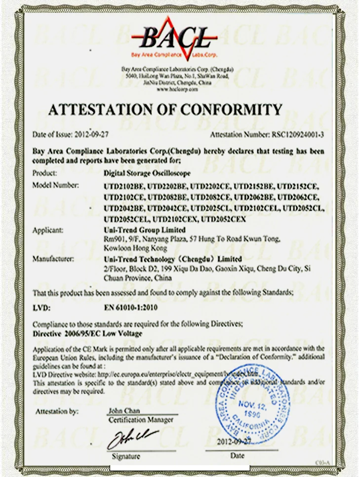 | Standard Accessories | Probe×2 (1×,10× switchable),Power Cord, USB Cable, PC Software CD |