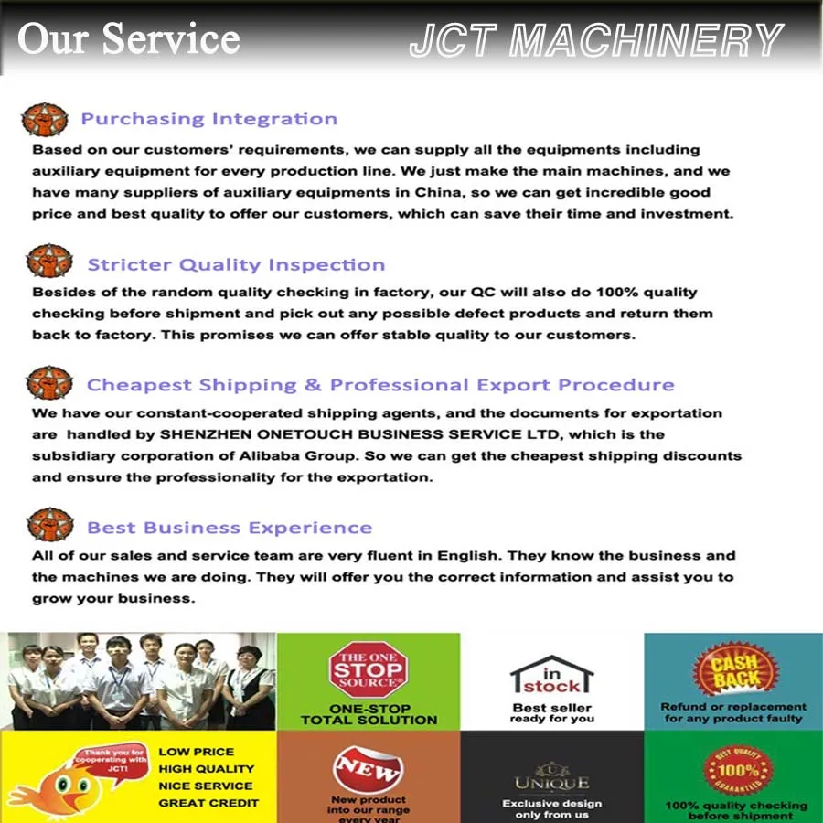 5) JCT's main markets: China, Europe, Africa, Middle East, South America and South Asia, we can sell machines to anywhere as long as it needs.