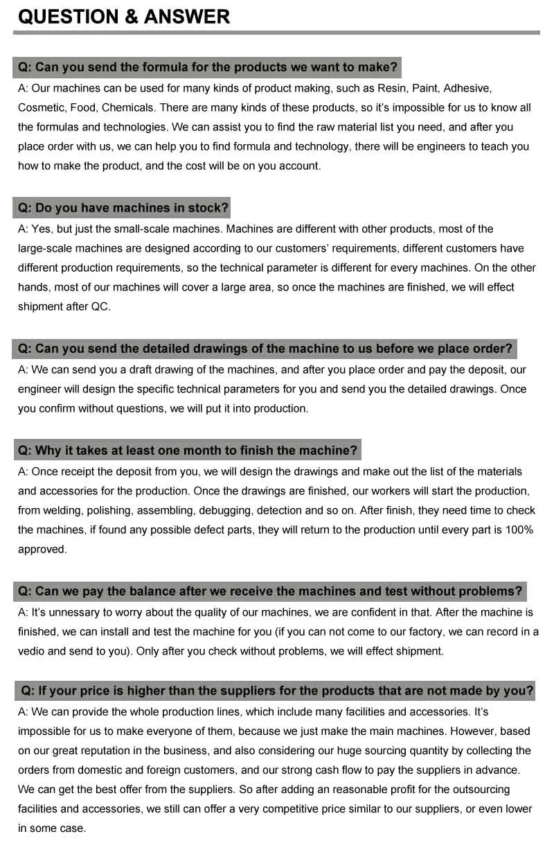 3) JCT specializes in all kinds of reactors, mixers, kneaders, dispersers and some filling machines and extruders etc. And the machines are widely used in all kinds of adhesives, resins, rubbers, paints, sealants, chemicals, emulsions and some food and pharmaceutical industries.