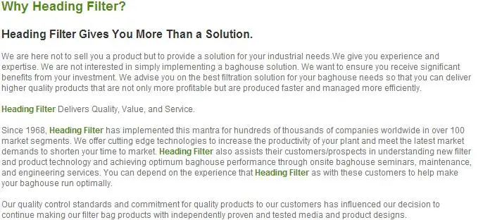 ZHEJIANG HEADING ENVIRONMENT TECHNOLOGY CO,LTD Location in Zhejiang, China, is an innovative company delivering powerful filtration solutions to help companies increase market share and improve production throughput while increasing the bottom line. Heading Filter offers a one stop shop for all baghouse needs including manufacturing facilities for conventional and industrial baghouse filter bags, filter cages, and dust collector baghouse hardwares.