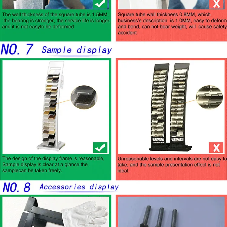 | Single package size: | 10X10X10 cm; | Keyword: | Quartz Stone Display Rack; |