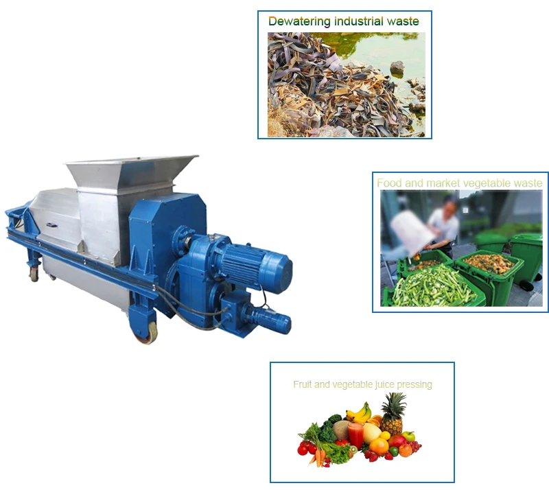 B:Used in agriculture waste area:Food waste and market vegetable waste dewatering,grass,wheatgrass dewatering,agriculture waste,cassava waste,and other residues. C:Dewatering industrial waste:Dewater leather waste,cloth waste,oil residues waste,herb residues waste,wine waste,Vinegar dregs,Soy sauce residue,etc