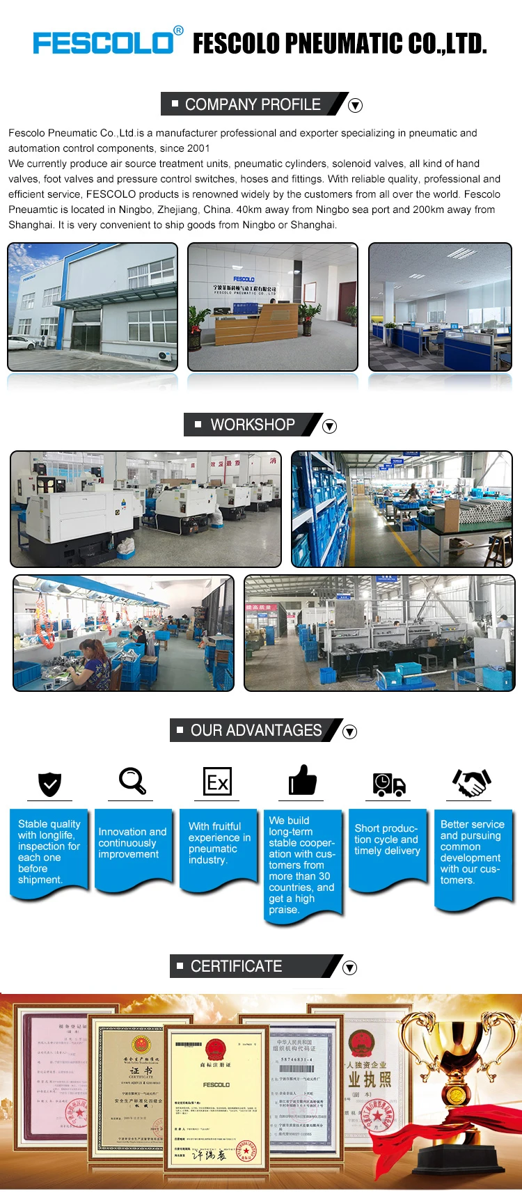 | Speed range: | 50~800mm/s; | Brand Name: | FESCOLO pneumatic air cylinder; |
