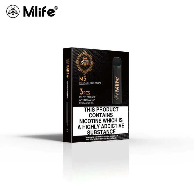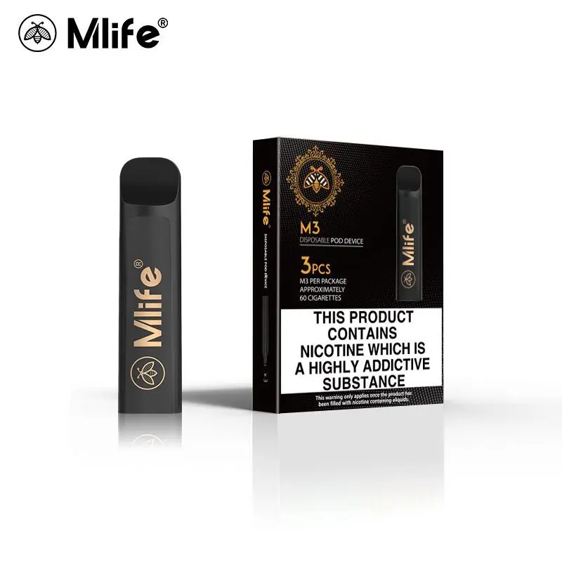 Mlife M3 is a series of new fashionable design All-In-One disposable pod system electronic cigarettes, with its slim design, portable device, no rechargeable, no refillable, mouth-to-lung style vaping can offer you real smoking feeling! .