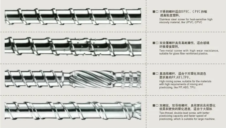 - There are three or four screws and barrels with optimal design, respectively, nitride, hard plating, dual-metal, which is suitable for different processes of a variety of plastics. and the choice of product.
