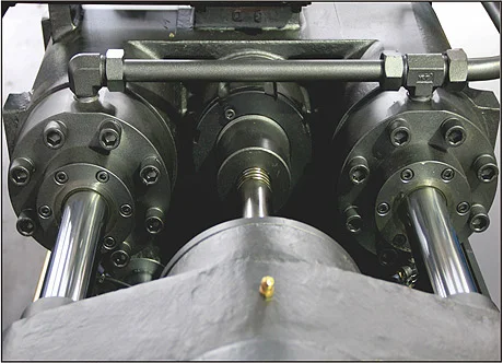 Double cylinder balance injection mechanism provides high-pressure injection, easy maintenance and saves space.
