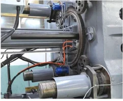 For big machine (600T and above size), adopts the barrel support device, avoid barrel up and down, ensure no material leaking under high pressure injection.