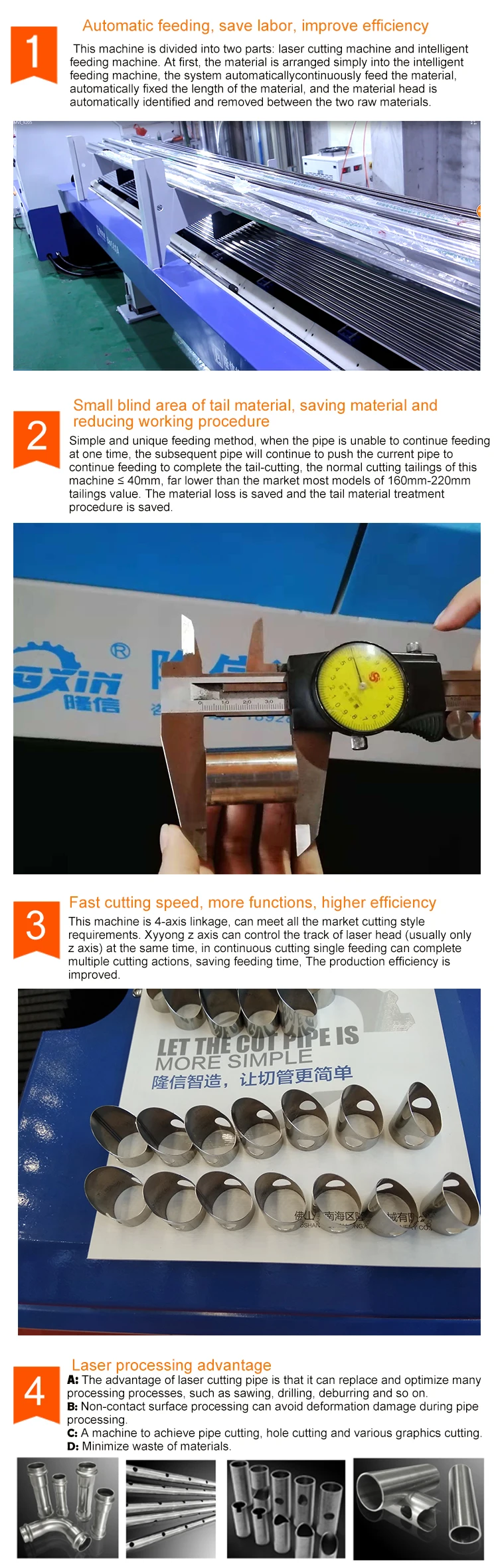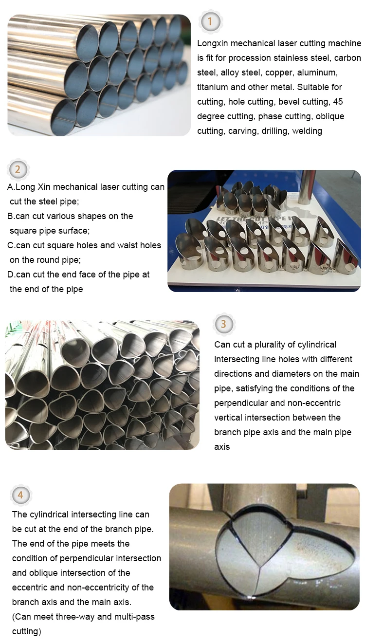 Longxin Machinery is specialize in metal pipe processing machine’s designing, producing and installation. We have more than 50 products including laser pipe cutting machine, intelligent off-line & on-line CNC automatic pipe cutting machine, bending machine, chamfering machine, grinding gear machine etc.. Our products are widely used for stainless steel pipe, sanitary ware, metal furniture, hardware accessories, sports equipment, car exhaust pipe, motorcycles, bicycles, air conditioning pipe, fences, security nets, shelves and other industries and receive positive feedback from customers all over the world, such as Russia, Vietnam, Mexico, Pakistan, etc.