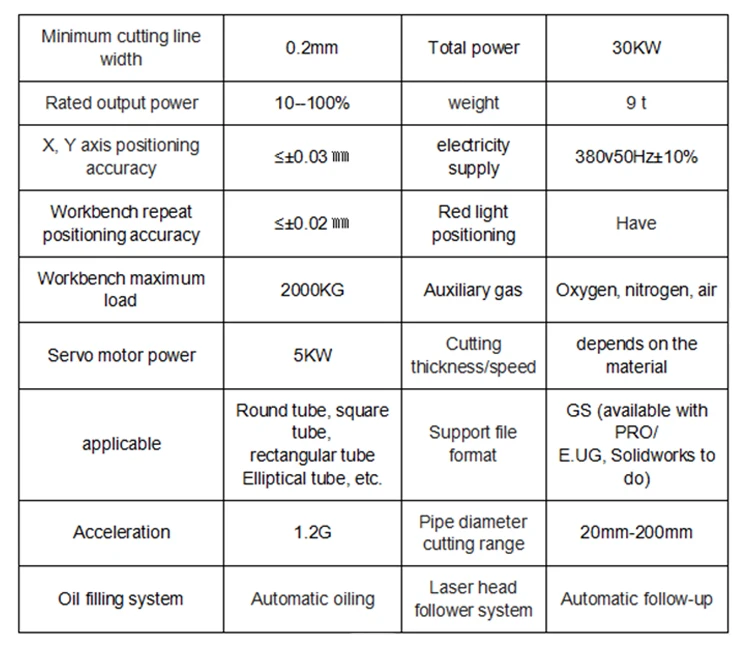| Pipe processing range | circular tube Φ 16-Φ 120mm |