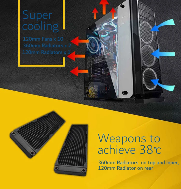 | Above power supply: 120mm X 3 | |