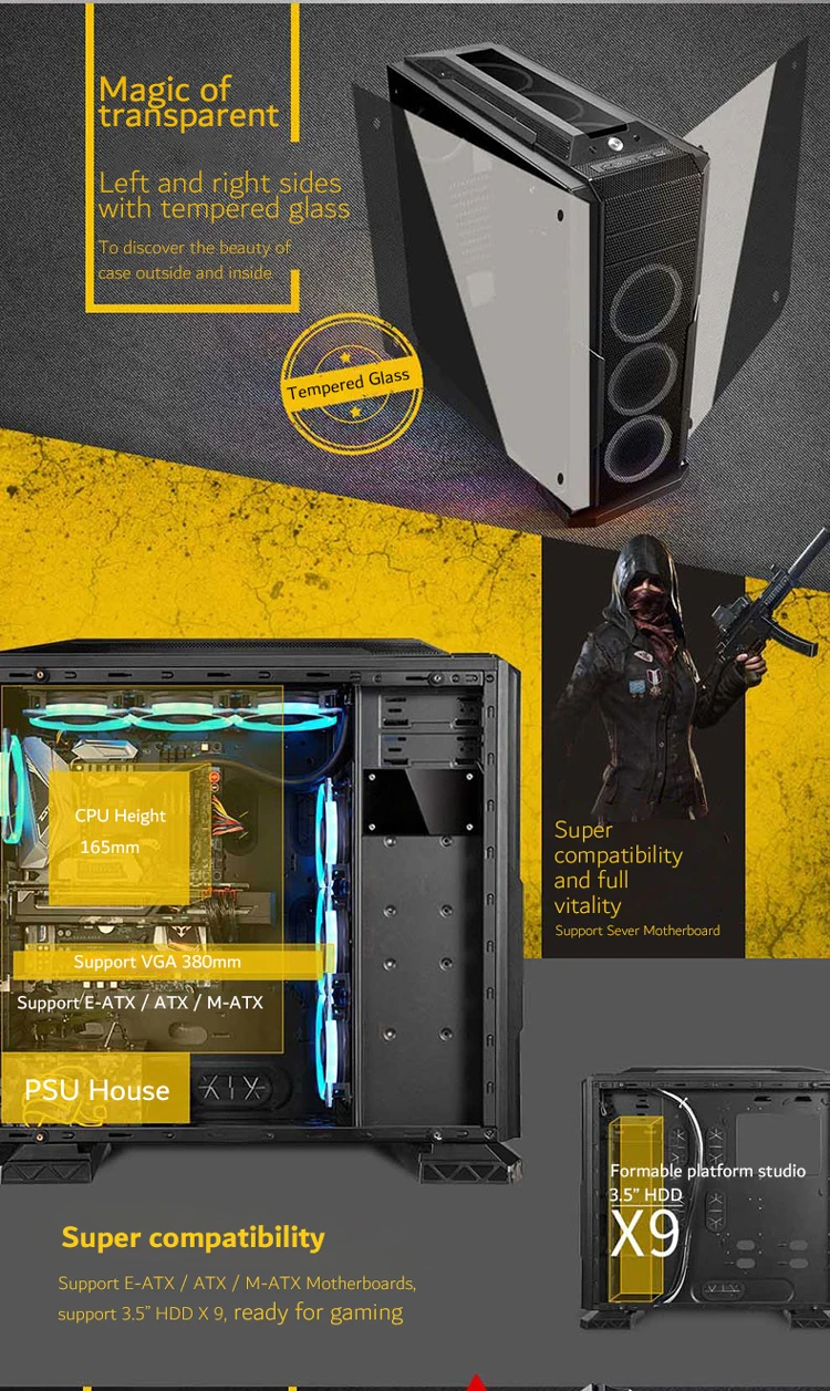 Tempered glass gaming computer case good price shengyang Technology
