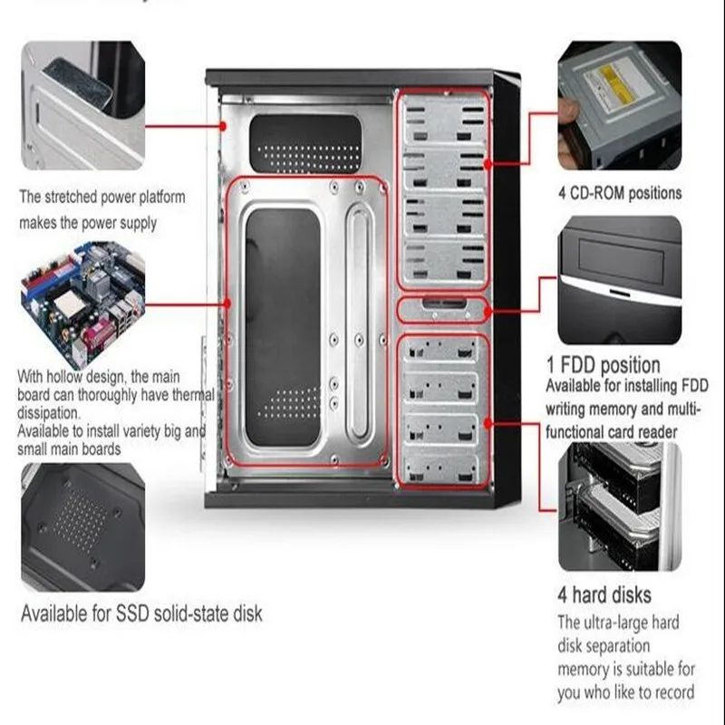 | Brand Name: | Shunxinjie; | Front Ports: | Audio,USB,USB3.0 optional & 2 port USB or 4 port USB optional; |