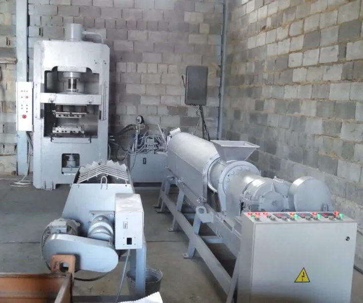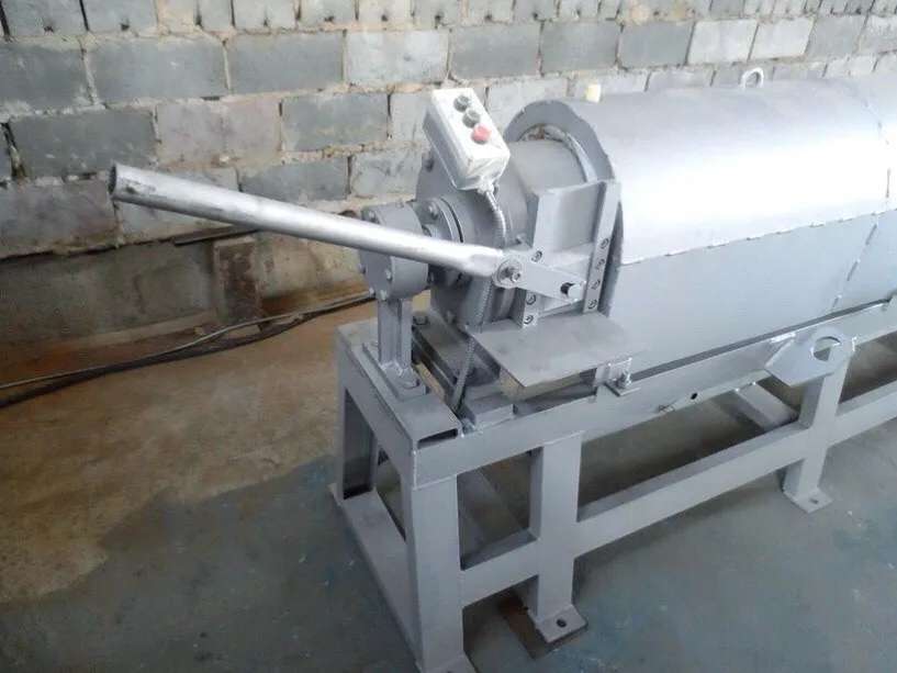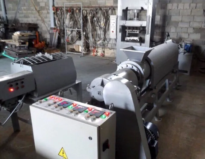 The temperature is maintained and controlled automatically by the controller. At the same time, the power consumption is small and induction coils operate alternately to maintaining a certain temperature).The mixed and heated mass exits out of the extruder in a certain portion that is regulated by the shut-off. Then the mass is transferred to the mold of the press for further forming.