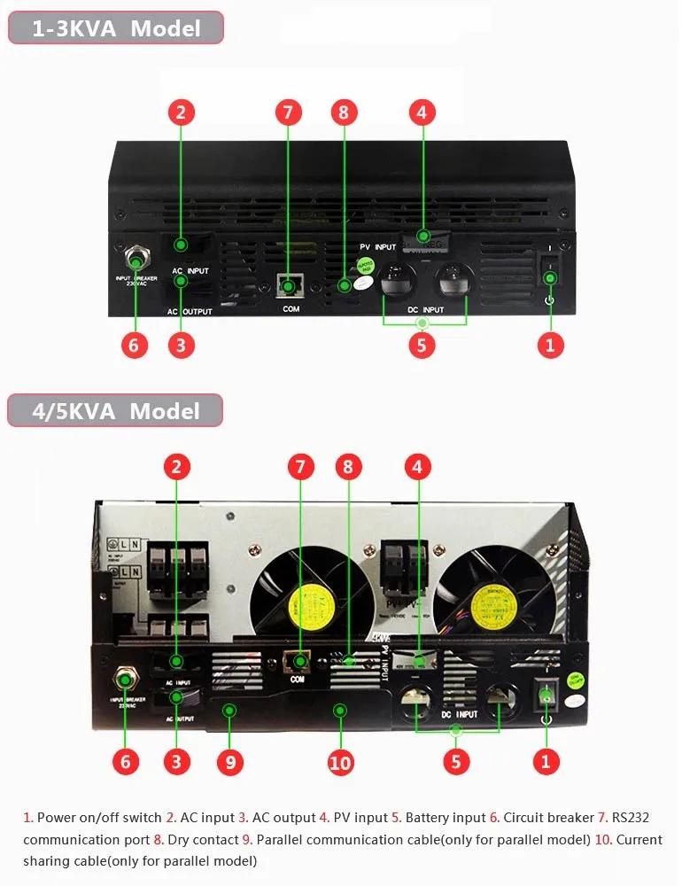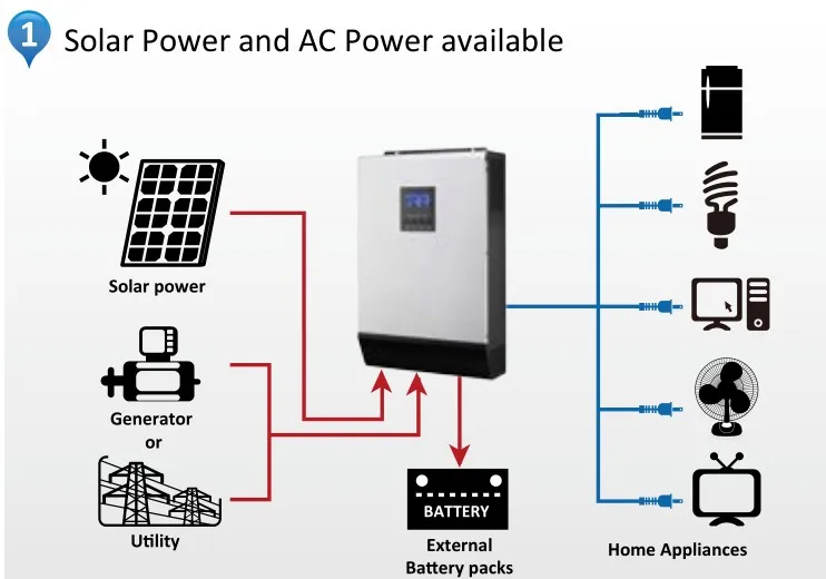 5.Configurable AC/solar charger priority via LCD setting