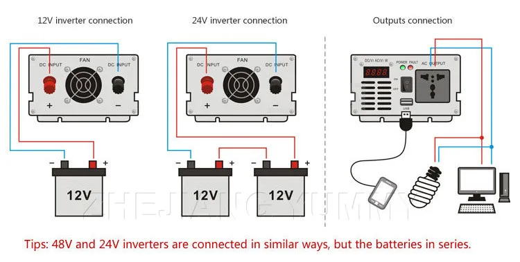 This pure sine wave inverter provide superior quality clean true sine wave output, it is designed to operate inductive loads and sensitive loads. Connect this pure sine wave inverter with battery terninals,then you can get AC power for your appliances,the AC output identical or even better than the power supplied by your utility.