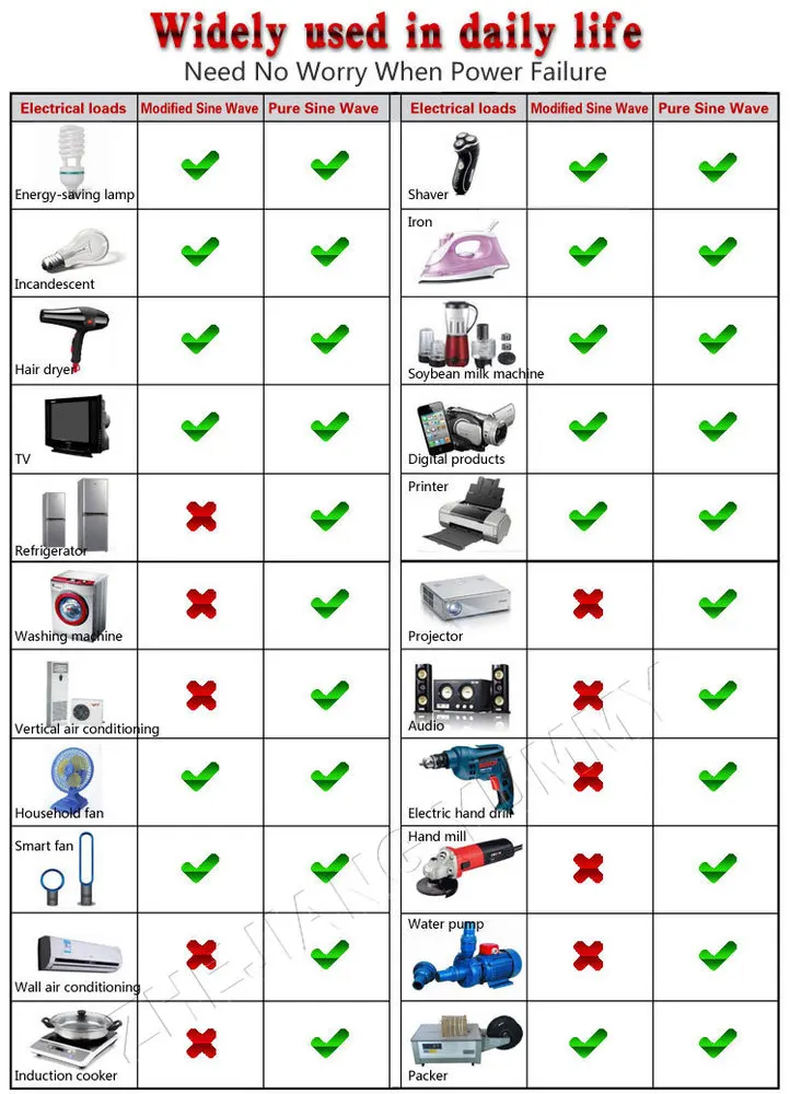e) Reliably powers the following devices,you'd better choose pure sine inverter