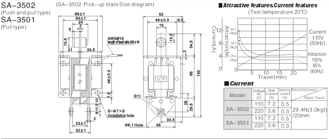 | SA-3502 | PUSH-PULL | 20 | 29.4(3.0) | AC220orAC110 AC380 AC24 AC36