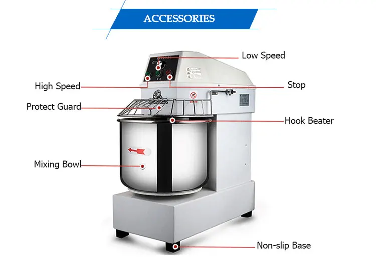 4.The spiral dough mixer with safety protection device.The mixer stop working when the cover open.