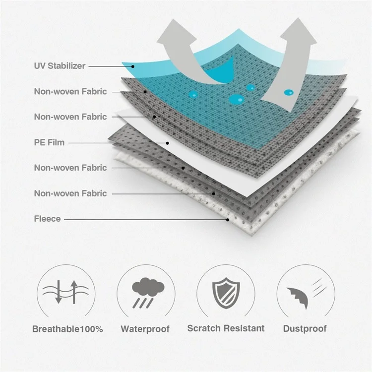Our products are 100% exported worldwidely, especially to the United States and the European markets, mainly including car covers, Automatic Car Umbrella, window blinds, motorcycle covers, caravan cover, ATV cover, boat covers, limousine covers, sedan covers, interior thermal window blinds, slide sheet, transfer sheet, snowmobile covers, camping tents, furniture covers and varieties of bags, etc.