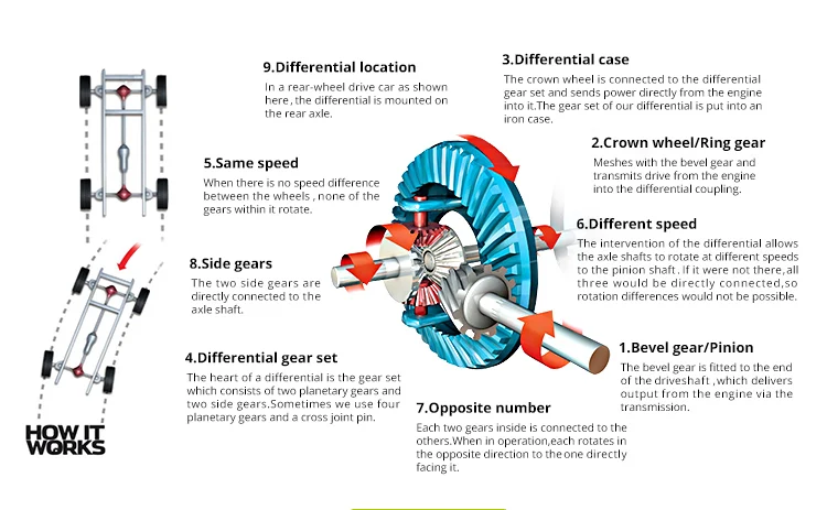 | Compose | Differential case,Differential flange part,Crown and pinion,Small differential,Bearings |