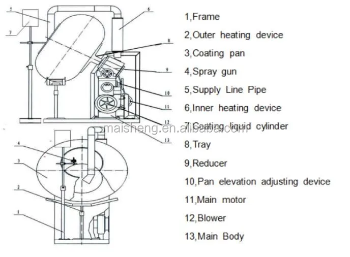 2. Easy to wash and maintain, thermal efficiency is high, it can produce the technological requirement and regulate coating in one pot, and the angles of the pot is adjustable, easy to operate.