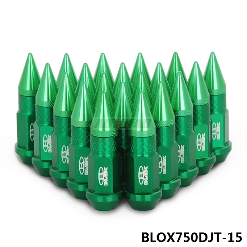 AUTOFAB - Blox Racing 20Pcs M12X1.5 Aluminum 50MM Extended Tuner Wheels Rims Lug Nuts With Spikes Spear tip Jdm BLOX750DJT-15