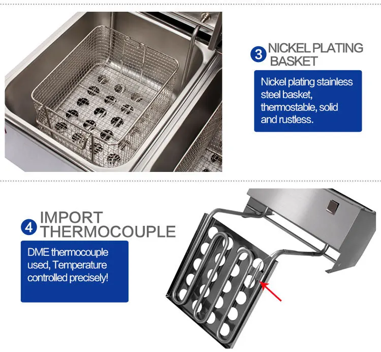 4.Fry basket made of nickel-plated stainless steel, durable under high temperature circumstance.