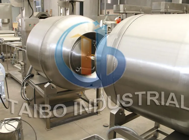 The Vacuum Meat Tumbler works in vacuum state, using the physical impact principle, make the meat block or meat filling flip up and down in the drum, so as to achieve the effect of fast massage and curing. By sufficiently absorbing the curing liquid ,the meat binding force and water retention is improved ,the finished product elasticity and yield is also be improved.