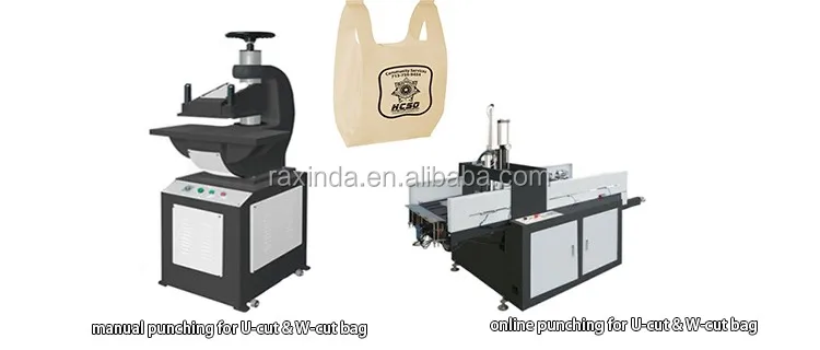 This machine is a kind of ideal equipment for non-woven fabric(with printing or not) shopping bag, U-cut bag, pillow bag, shoes bag, ribbon through bag, box bag etc. Automatic punching, automatic counting and alarm, automatic loading, stop automatically when the label lost.
