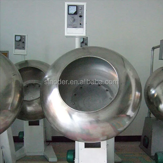 1)The machines sugarcoat the tablets and pills for pharmaceutical and food industries. It is also used for rolling and heating beans and edible nuts or seeds. For example: chocolate polishing, bag of peanuts, sugar, spices, manufacturing dumpling, pearl powder round, rolling desiccant, production of chemical packing, aluminum hydroxide ball, alumina ball, balls molecular sieves, catalysts coated polished the sugar-coated tablets, with a bright color appearance