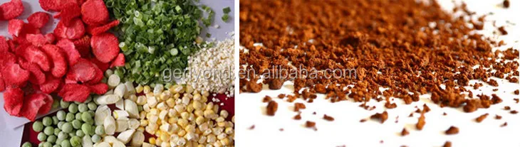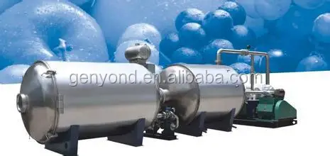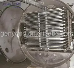 Vacuum freeze drying technology is the most advanced technology for food dehydration processing at present. Compared with the common drying method, the freeze-dried food produced with this technology features long period of quality assurance, good re-hydration nature, good-looking color, good flavor, taste, shape and high content of nutritious components. The dried food basically remains unchanged in its volume and shape, it looks like sponge and has no shrinking. This kind drying technology can be widely used in process of vegetables, fruits, condiments, aquatic products, biological products, medicine, beverage and etc.