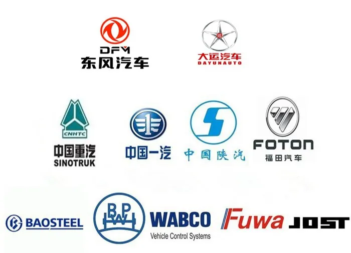 SINOTRUK,Dongfeng,Dayun, FAW, SHACMAN, FOTON, BAOSTEEL, BPW, WABCO, Fuwa, Jost