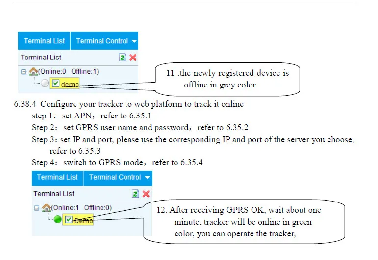 6.38.5 If the tracker is always offline (grey color), make sure the SIM card subscribe the GPRS service,