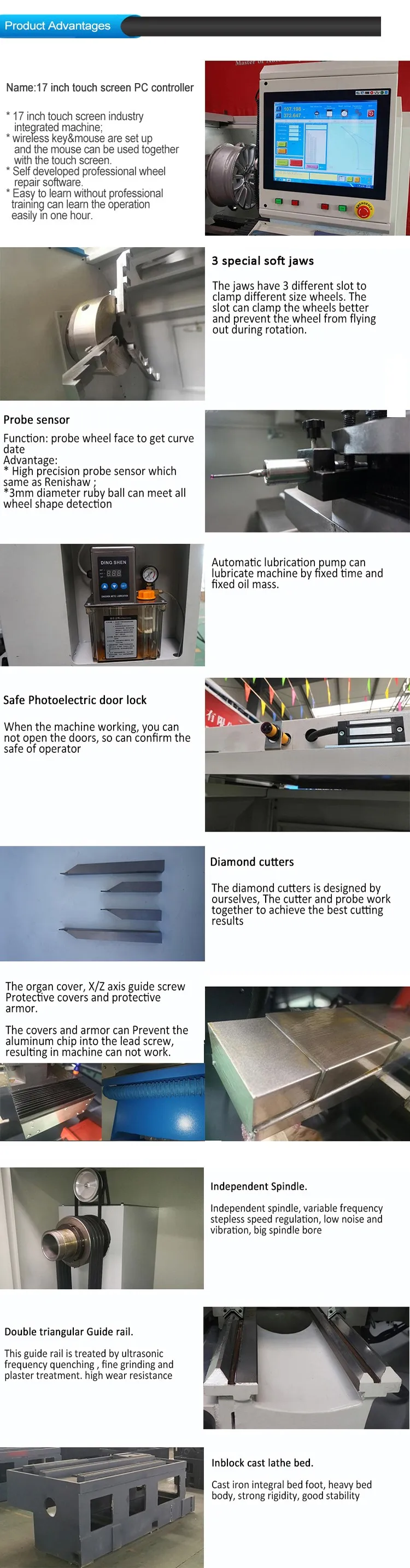 1.Our machine can probe and cutting alloy wheels automatic.