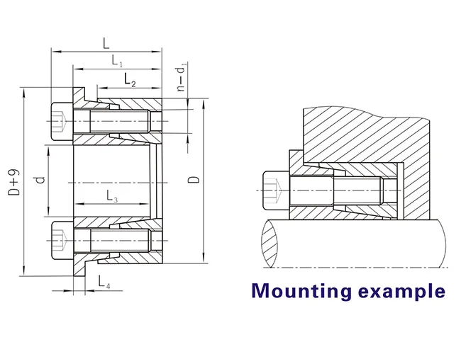 d | D | L | L1 | L2 | L3 | L4 | d1 | n | Torque Mt [kN·m] | Axial Force Ft [kN] | ||||