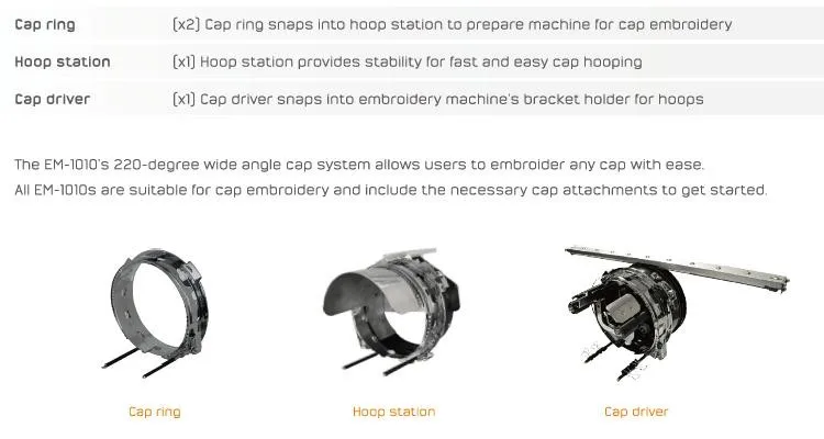 The 8-in-1 device is designed to help users accomplish embroidery on items such as shirt pockets, socks, cap backs, shirt sleeves, collar tips and more.