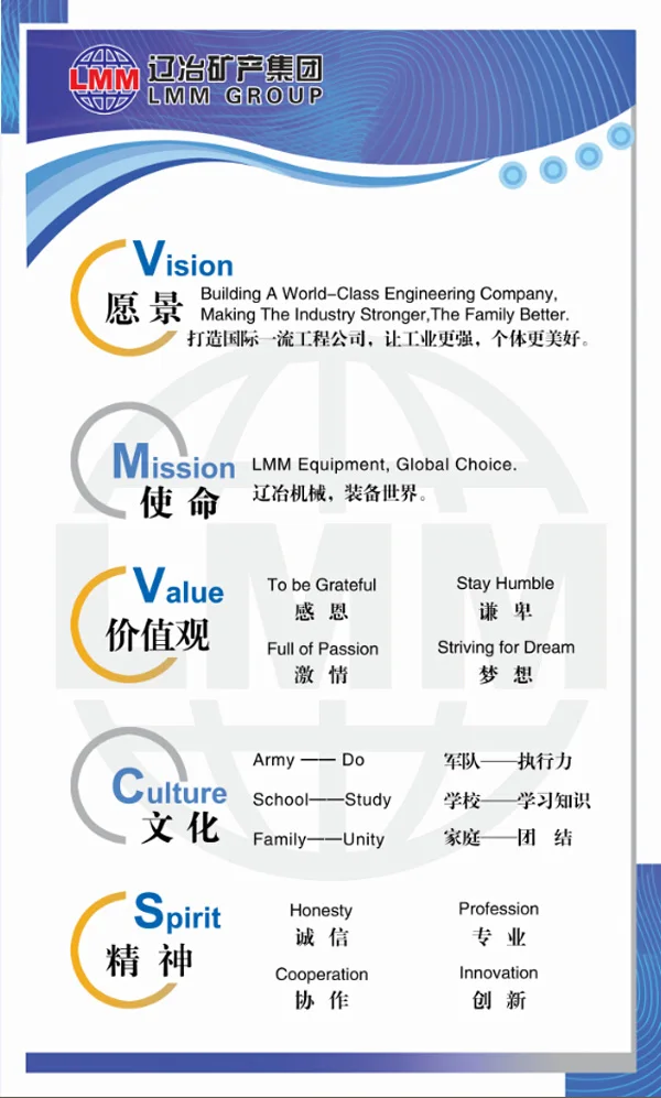 Liaoning Mineral & Metallurgy Group was founded in 2007 . We are specialized in roller , conveyor and auxiliary project , integrating desigh , produce , sales , installation , and service . This company has convenient communication and strategic location . With these years development , Liaoning Mineral & Metallurgy Group has some rewon is this industry .We have various of advanced processing equipments and checkout equipments .At the same time, we select staff is not limited to one style.This philosophy attracts desigh engineers , senior engineers and more than 80 skilled workers to join lmmgroup .lmmgroup is a young and keeping space with time company .We market products through alibba , baidu and so on . Now our marketing network is around the world .lmmgroup focus on the quality of products . Quality is the root of our survival . We have got ISO9001 quality certificate in 2010 .Our company pays attention to technological change and product innovation . We have applied for 4 patents like "convey trolley" which patent number is (20100547998.4).Our next target is high-tech enterprise of Zhejiang Province .