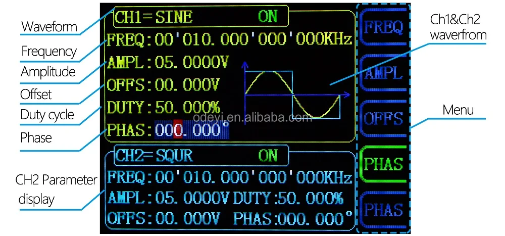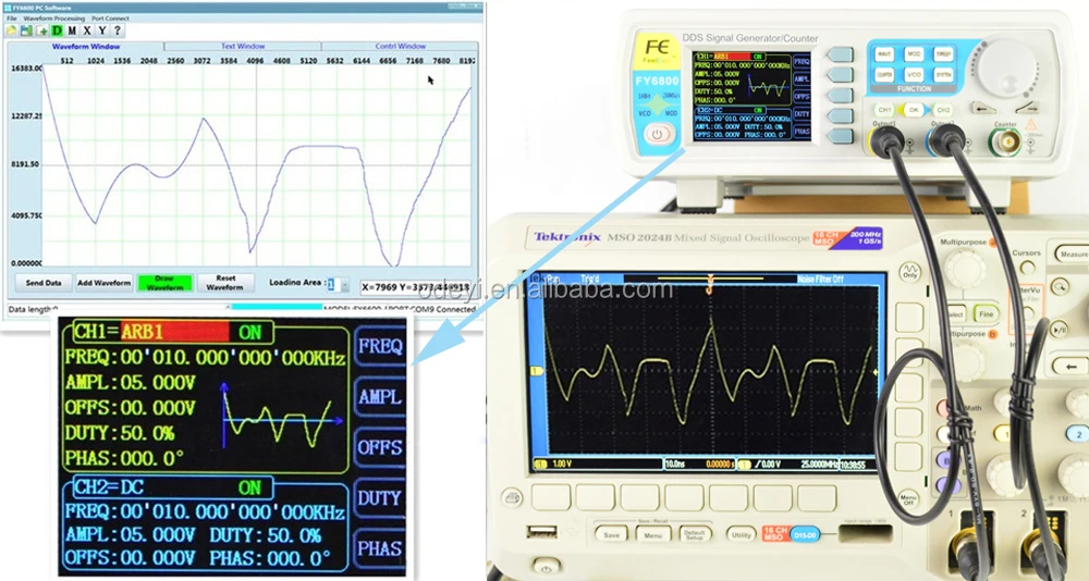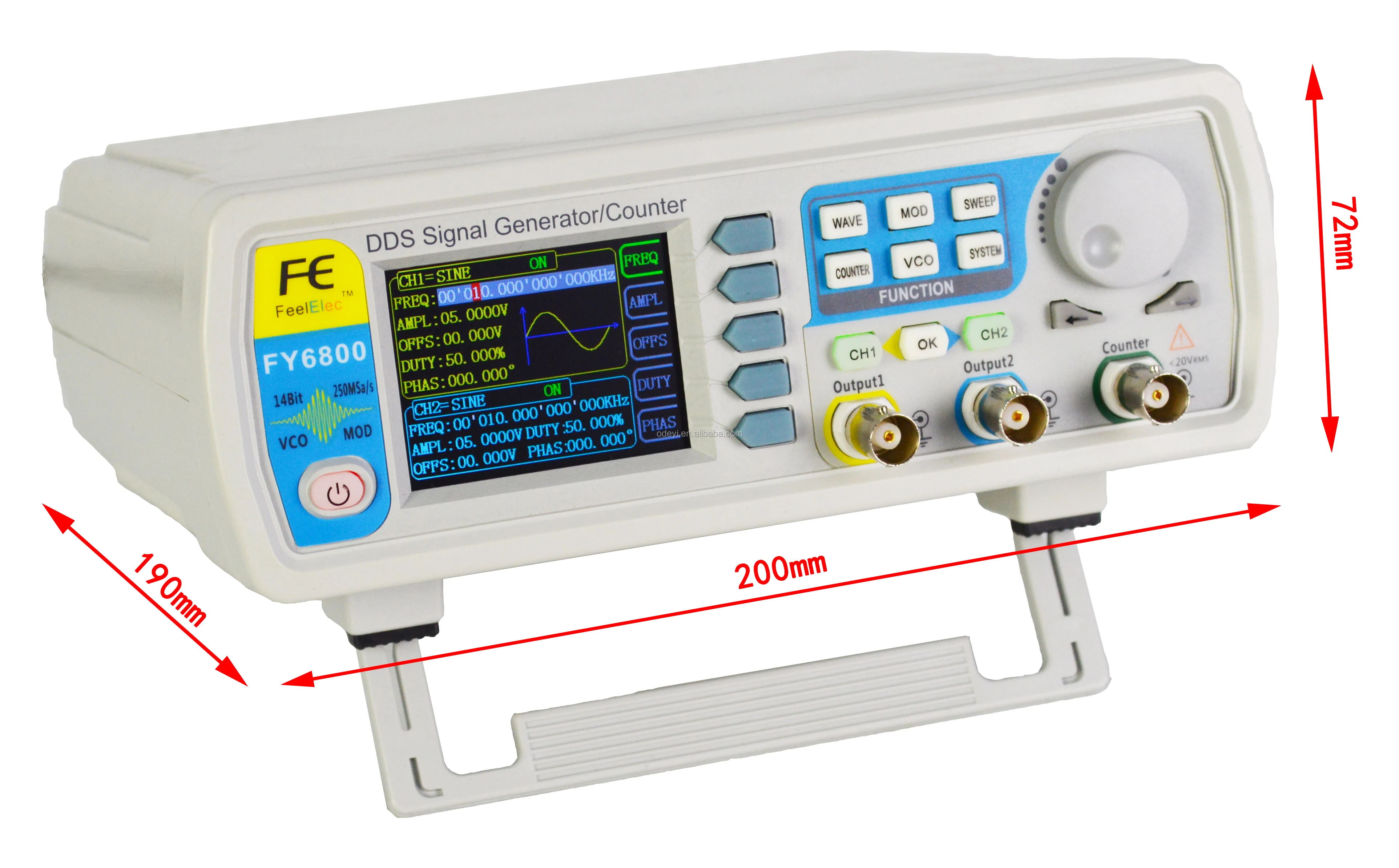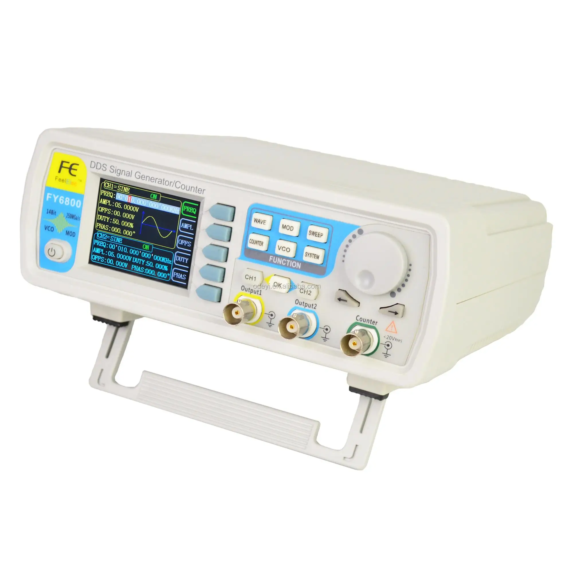 FY6800 series Dual-channel Function / Arbitrary waveform generator is a set of Function Signal Generator, Arbitrary Waveform Generator, Pulse Generator, Analog / Digital modulator, VCO, Sweep, Counters and Frequency Meter and other functions in a high Performance, cost-effective, multi-function signal generator. Abundant shortcut keys and graphical user interface simplifies every operation. Users do not have to spend a lot of time to learn and familiar with the operation of the instrument, you can be skilled use. For education, research and development, production, testing, maintenance and other industries to provide a new choice.