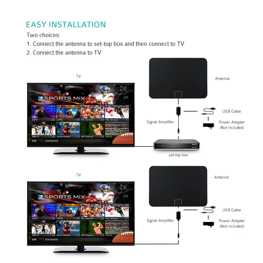 This amplified antenna can pull in all of free HD programs, including local news, weather, sitcoms, kids and sports programs absolutely FREE by access from broadcast tower. Just connect the antenna to your television and let it do all the work.
