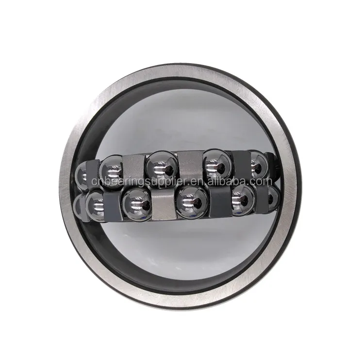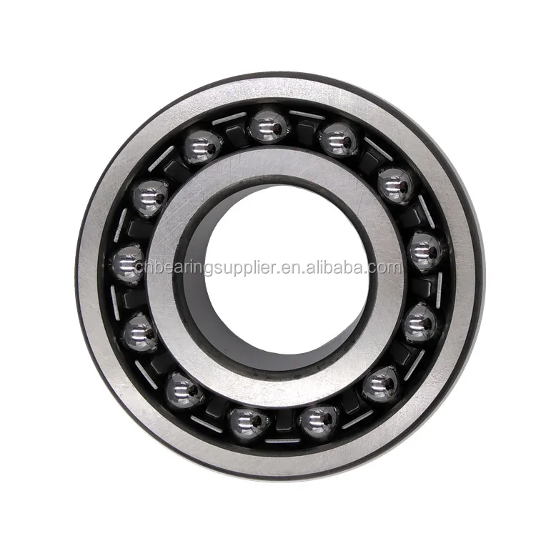 The components of the self aligning ball bearing include two rows of balls, a cage, an inner ring, and an outer ring with a common concave sphered raceway.This type of bearings is self-aligning and insensitive to angular misalignments of the shaft relative to the housing. The bearings are produced in several design: open bearings with the basic design, sealed bearings, open bearings with an extended inner ring.The self alignning ball bearings have the lowest friction of all rolling bearings.The bearings are available with a cylindrical bore or with a tapered bore in certain size ranges. Self-aligning ball bearings have two rows of balls and a common concave sphered raceway in the outer ring. The bearing is consequently self-aligning and insensitive to angular misalignments of the shaft relative to the housing. It is particularly suitable for applications where considerable shaft deflections or misalignment are to be expected. Additionally, the self-aligning ball bearing has the lowest friction of all rolling bearings, which enables it to run cooler even at high speeds.
