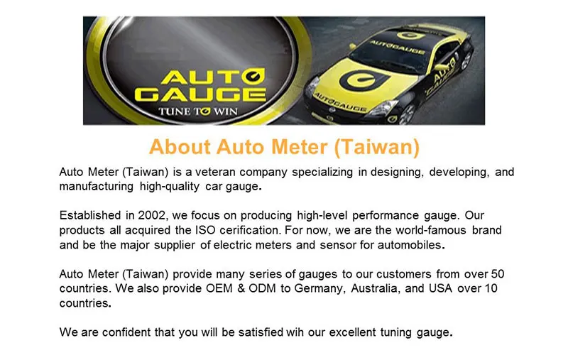 | Brand Name: | Auto Meter; | Place of Origin: | Taiwan, China; |