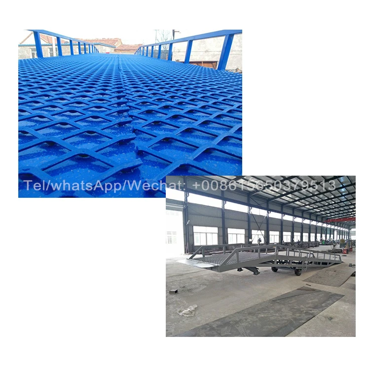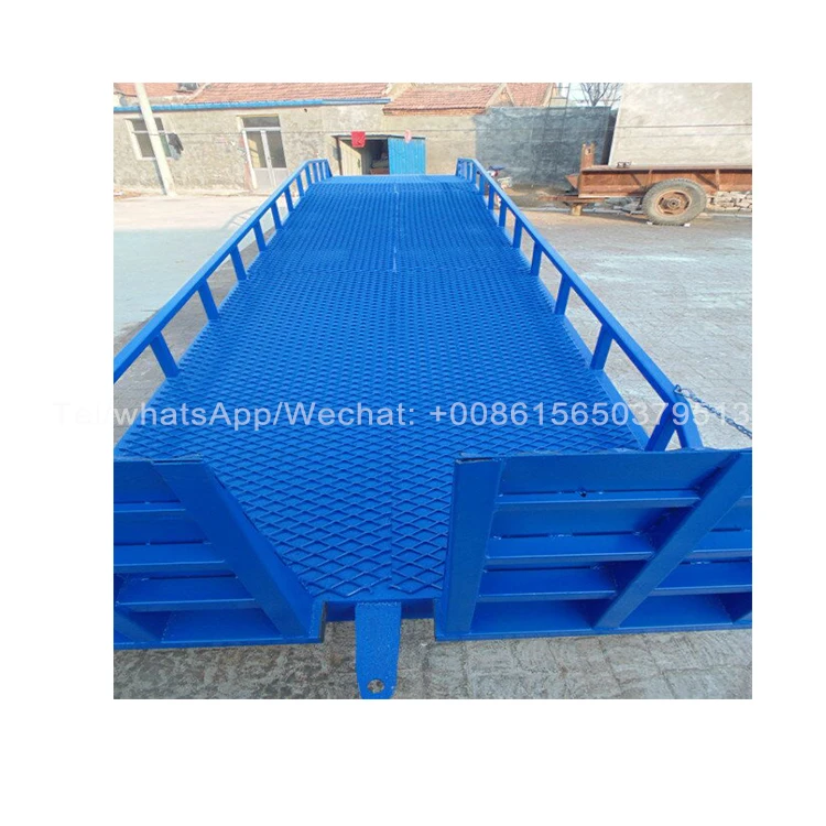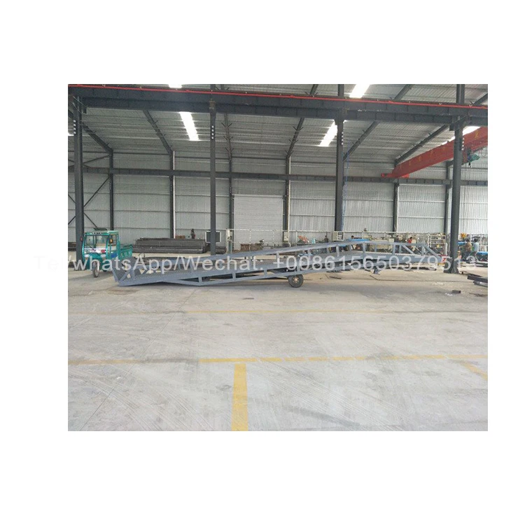 The mobile boarding bridge is a cargo loading and unloading auxiliary device used in conjunction with the forklift truck. The height can be adjusted according to the height of the car compartment. The forklift truck can directly enter the interior of the car through the equipment to carry out bulk loading and unloading of the cargo, which can be realized by only one person. Fast loading and unloading of goods. It enables companies to reduce a lot of labor, improve work efficiency, and obtain greater economic benefits.