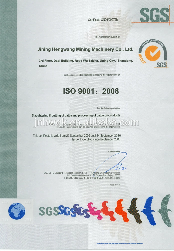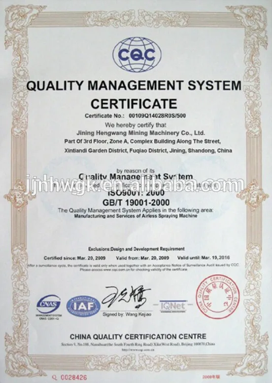 Quality certificate