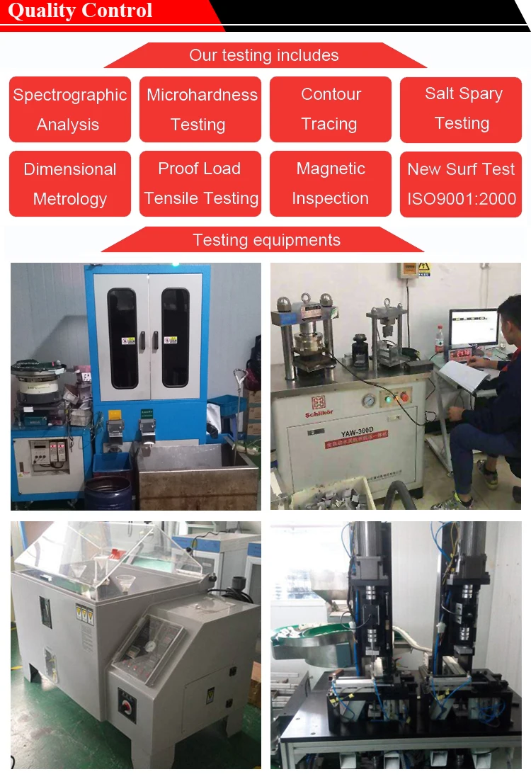 A: We have been in fastener field over fifteen years with rich experience. There are five inspections in the production process, including IQC(incoming quality control), IPQC(input process quality control), FQC(final quanlity control) and OQC(outgoing quality control). Overall control measures help to ensure a high level of quality.