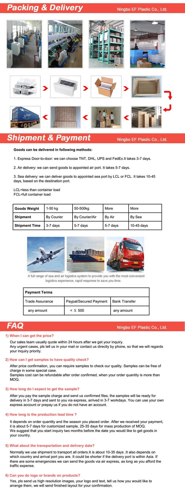 Delivery Term | FOB, CFR, CIF, EXW, DDP, DDU, Express Delivery etc. |