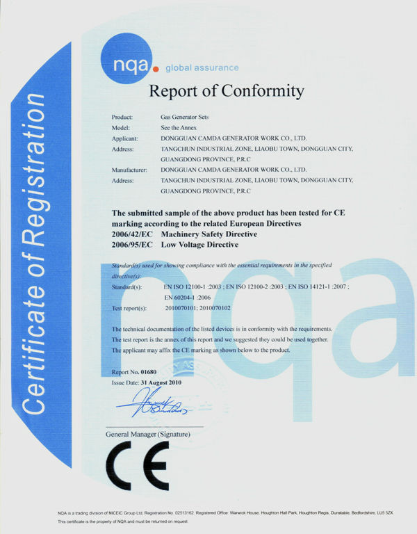 CE and ISO9001-2000/ISO 14001/ISO18001 Quality Control Certificate of Biomass Electric Gas Generator