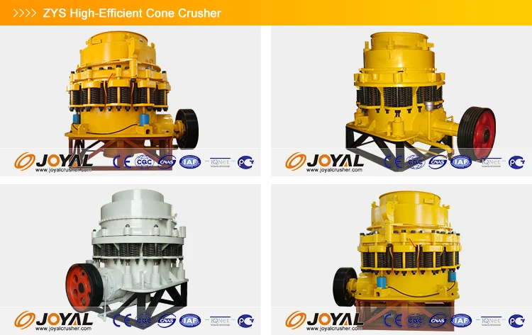 JOYAL High Crushing Ratio automatic stone crusher is a high-performance model optimized and improved on the basis of PY Series Spring Cone Crusher. The ZYS High-Efficient Cone Crusher is widely used for secondary and fine crushing in the fields of mining, building materials, metallurgies and so on. The ZYS High-Efficient Cone Crusher can crush materials with middle and high hardness, such as, metal ore, basalt, granite, limestone, cobblestone, sandstone and so on