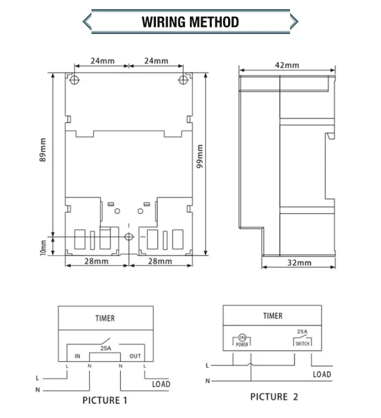 Power Timer can repeat programs with 28 ON/OFF setting and manual override, 1 second to 168 hours timing range, support advanced pre-setting one week before.